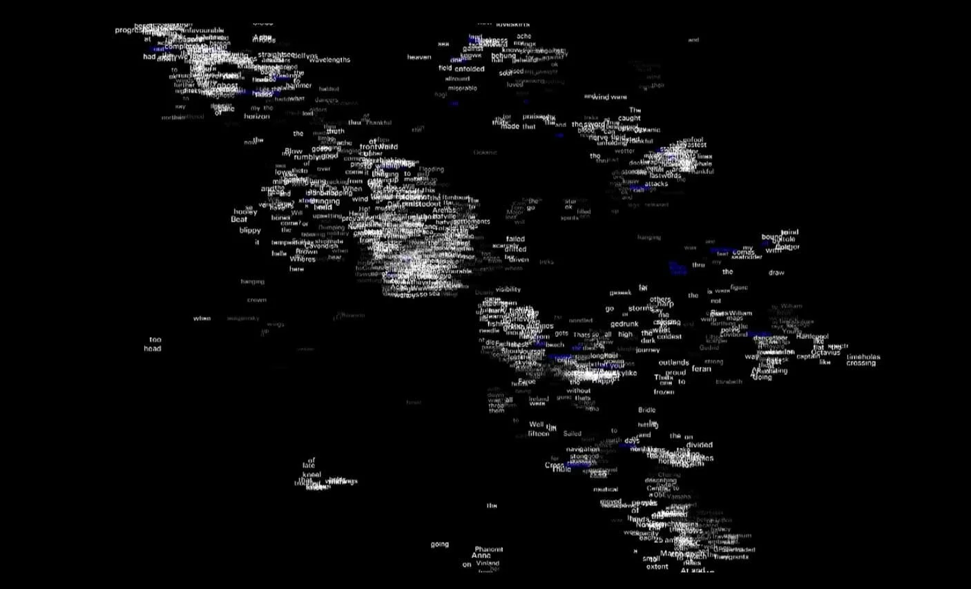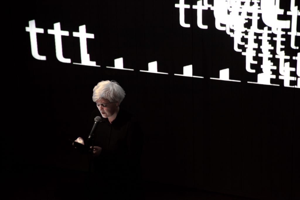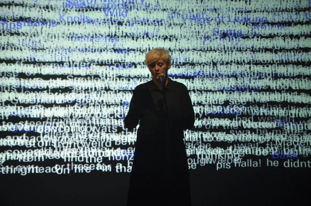 The text for the performance was inspired by the language and themes of the Seafarer, an anonymous Anglo-Saxon poem from the 10th century as well as drawing dirictly from official material from a current sea migrants’ tragedy. A contemporary meditation on migrancy, exiles and sea-travel. The dense electronic text landscape created by Thomas Köppel provides a kinetic and hypnotic reading and visual structure. It both allows and transforms the reading experience into a fluid and perceptually subtle mode of connection between live voice and textual material.