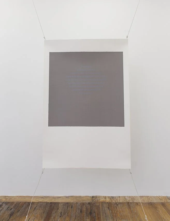 4 large screenprints, embedded text segment, pigment on square background, to be hung as “sailsongs”.