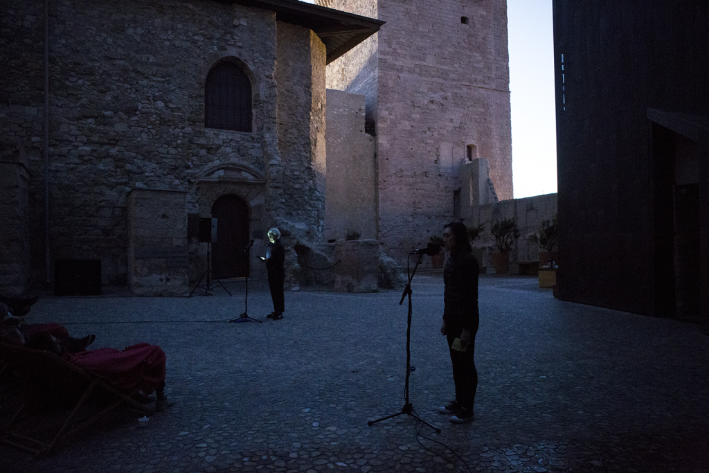 Pre-recorded interviews with bilingual poets, language artists and speakers across Europe are integrated into the performance as its rich and interconnected dawn chorus of voices. They are developed into a chorus of polylinguistic voices.